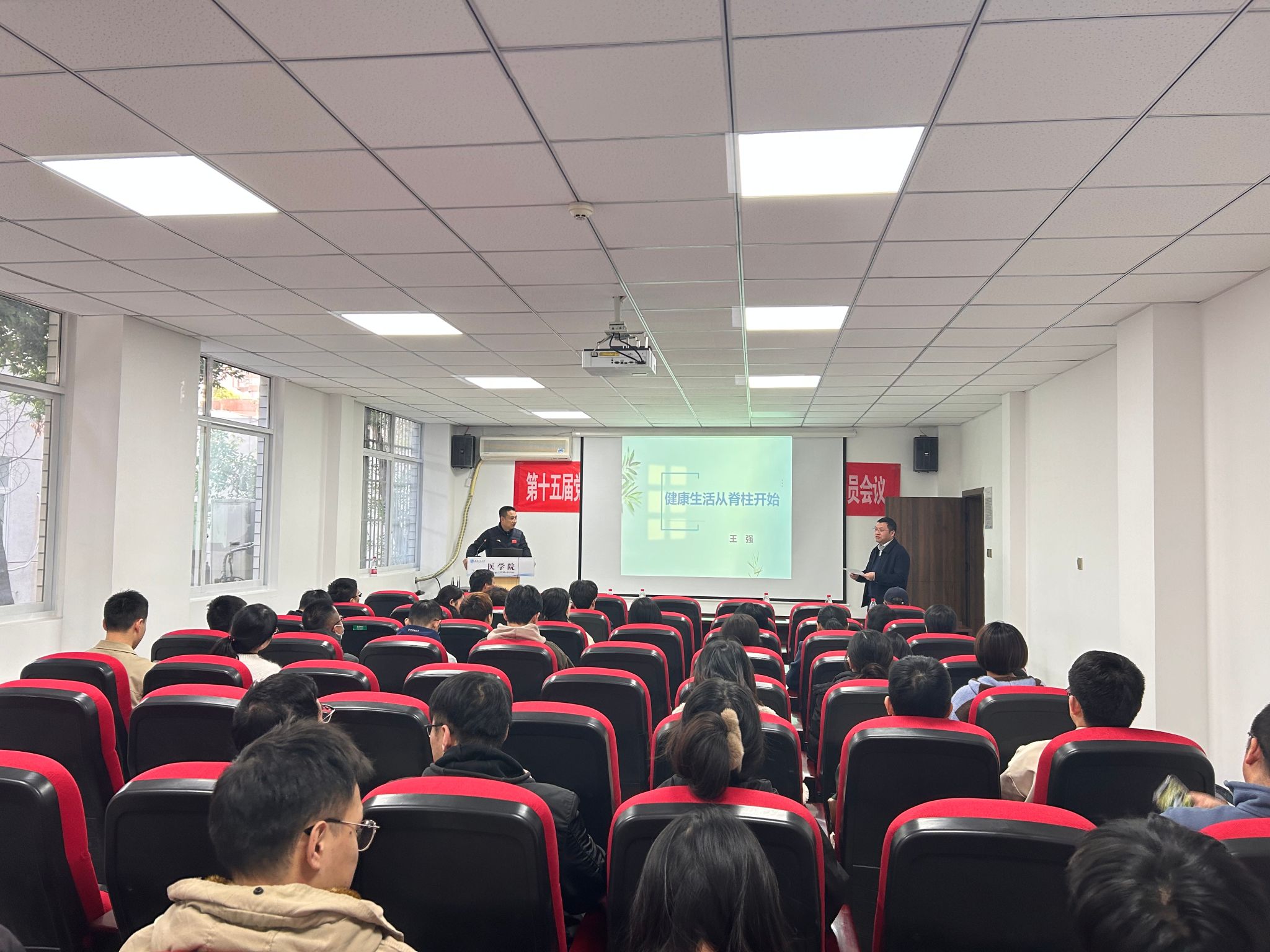 为了提高教职工的健康意识和保健水平,网投十大信誉可靠平台工会于11月16日下午在教学楼一楼报告厅举办了“健康生活从脊柱开始”健康讲座。本次讲座邀请了成都体育学院副院长、主任中医师王强老师作为主讲嘉宾。
