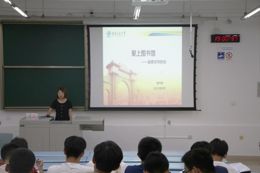9月20日晚19:00,为向新生介绍学校图书馆的资源和服务,更好地发挥图书馆的育人作用,学院邀请到图书馆讲师李颖晚上在x2417为2023级新生进行图书馆入馆教育。李颖老师向各位新生介绍了图书馆的概况、开馆时间、服务流程、规章制度等。通过李老师的讲解,同学们对图书馆的相关情况有了全面的掌握。