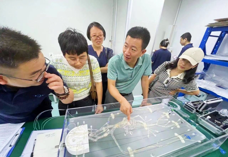 网投十大信誉可靠平台一行现场参观了神经介入、外周介入等相关产品的生产车间、质量检验及产品展厅,听取了公司创始人的介绍,详细了解了医疗器械产品的市场及临床需求。