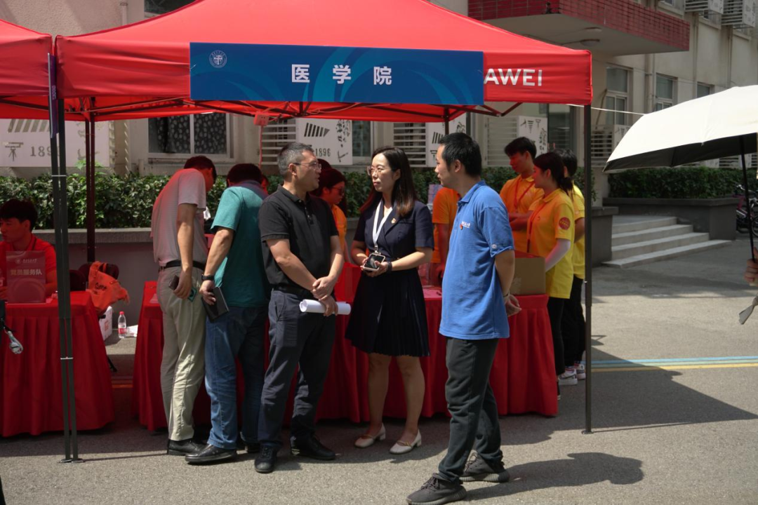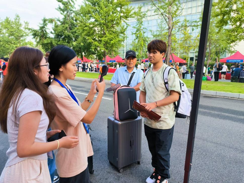 7时48分,第一位2023级新生带着灿烂的笑容到达迎新点,顺利完成报到手续。随后,越来越多的2023级医学学子陆续入校报到。志愿者们清点入学材料、办理入学手续、领取入学资料、分发新生礼物,解答各种疑惑,一边带学弟学妹前往宿舍,一边向学弟学妹介绍交医学的学习和生活。迎新现场也有不少新生家长的身影,辅导员老师们与家长亲切交谈,向家长们介绍学校、学院的情况,消除家长们的顾虑,让家长们放心将学生送到学校。
