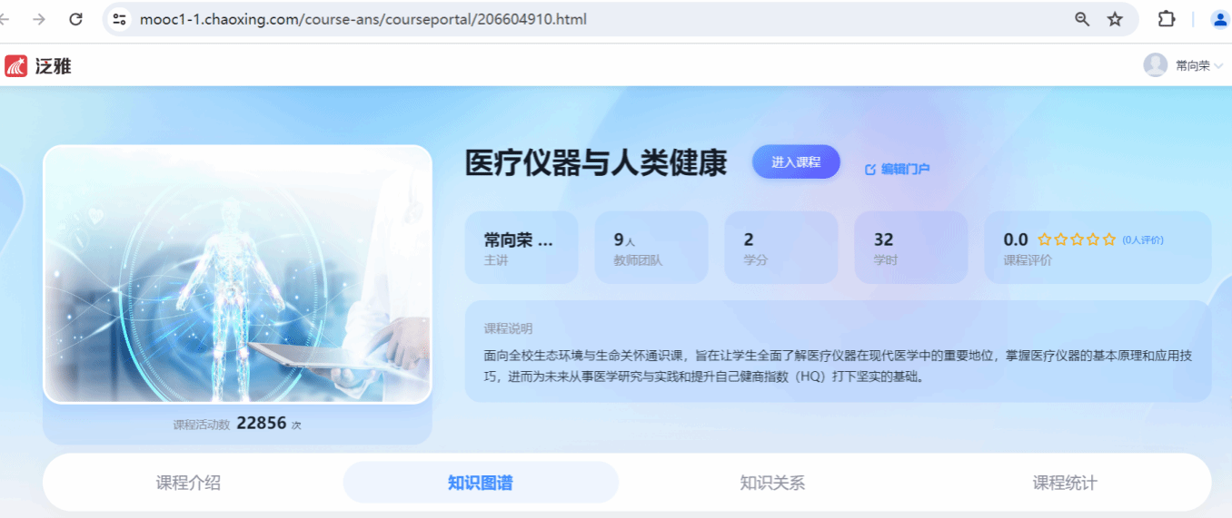 “医疗仪器与人类健康”是课程精心打造的学习平台,包括讲课视频、参考资料、示范案例、知识图谱和AI助教等资源,并通过精心的组织与设计,形成了结构化的课程网站,构建了以学生为中心的多元化学习环境。课程网站为以学生为主体开展毕业设计工作提供了全方位的指导和帮助,更好达成通识教育目标。