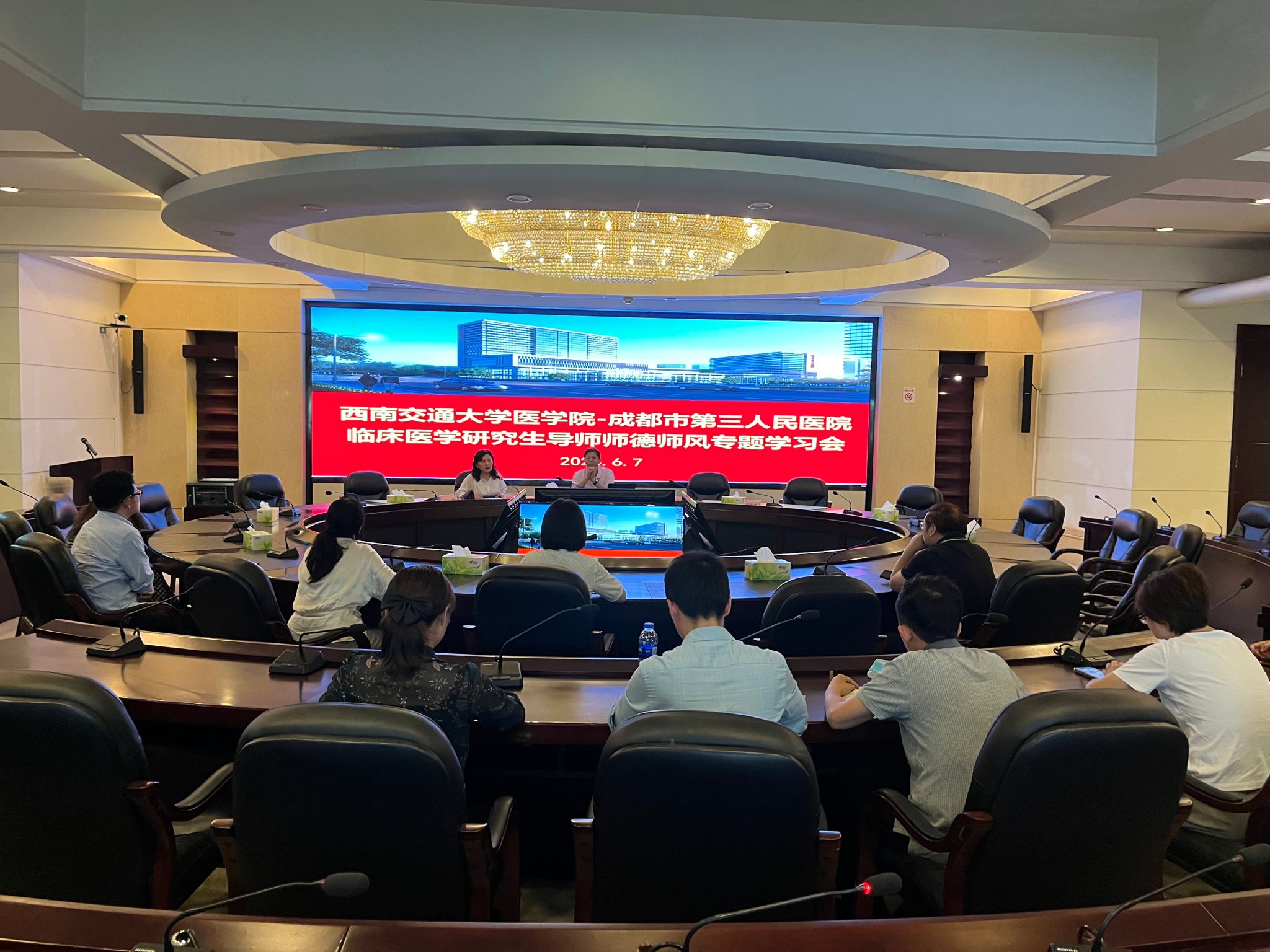 6月7日下午,李锦红书记、冷永祥副院长在附属医院成都市第三人民医院开展师德师风集中学习教育。