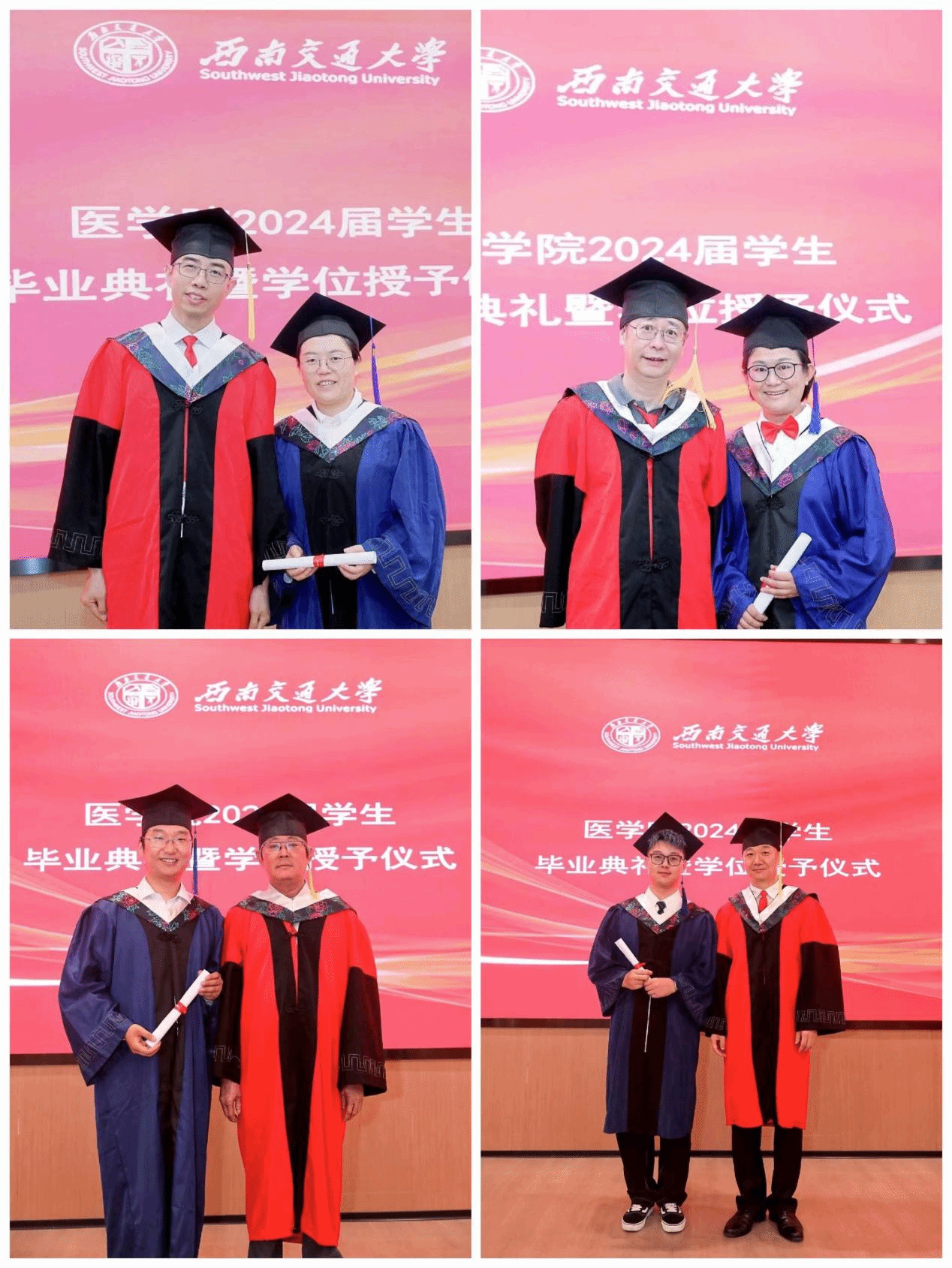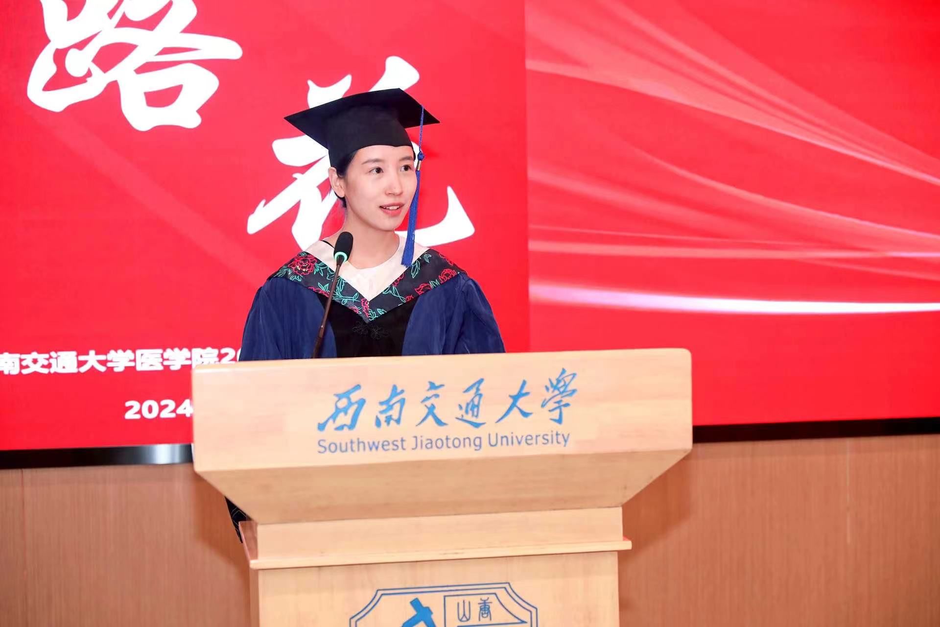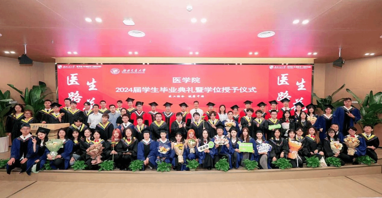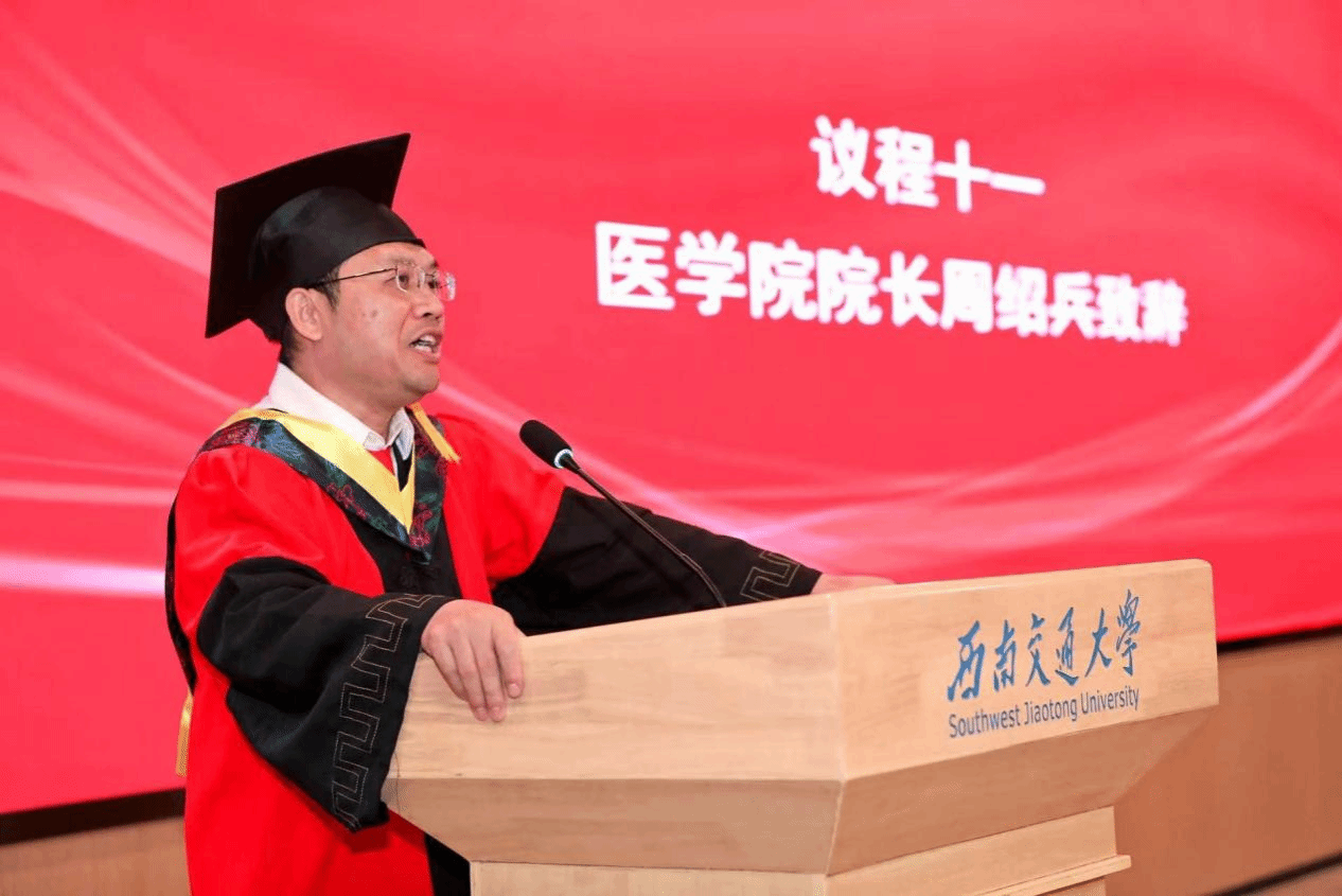 在授位仪式结束后,李锦红书记宣读了《关于表彰2024届优秀毕业生的决定》,决定授予2名本科生和2名研究生2024届“四川省优秀大学毕业生”、5名本科生和6名研究生2024届“网投十大信誉可靠平台优秀毕业生”荣誉称号。这些优秀毕业生在学业、科研、社会实践等方面都取得了卓越的成绩,他们的事迹激励着在场的每一位同学。李书记指出,“希望这些毕业生们在今后的人生道路上,将自身所学更好地融入中国式现代化的建设当中,既要仰望星空、也要脚踏实地,为引领医学科技创新,建设健康幸福中国做出更大的贡献。”同时,号召学院全体在校学生向优秀毕业生学习,为建设具有医工结合特色的研究型网投十大信誉可靠平台,为建设交通特色鲜明的世界一流大学贡献力量!随后,周绍兵院长、李锦红书记为优秀毕业生代表颁奖。