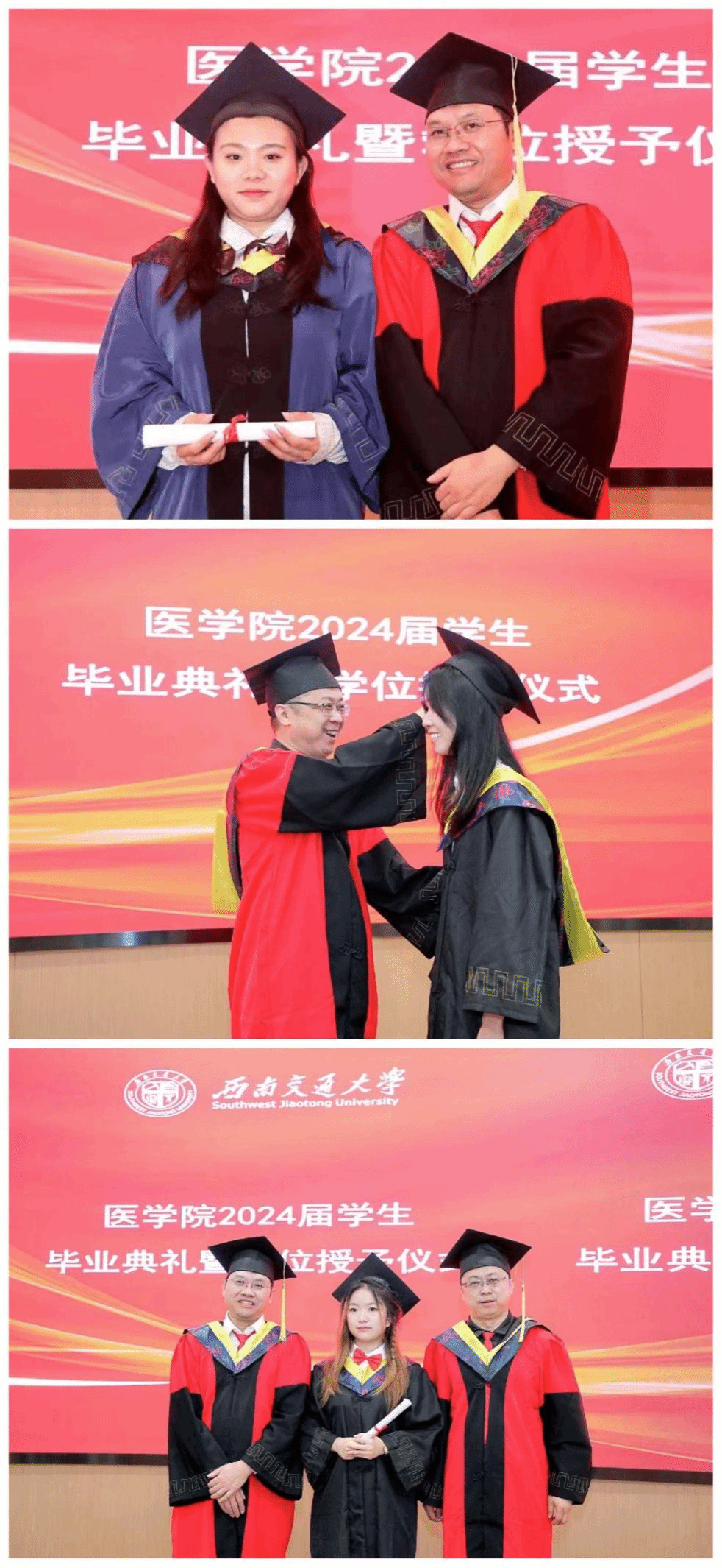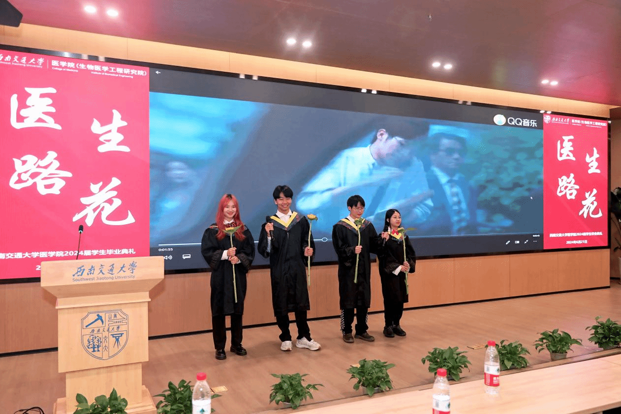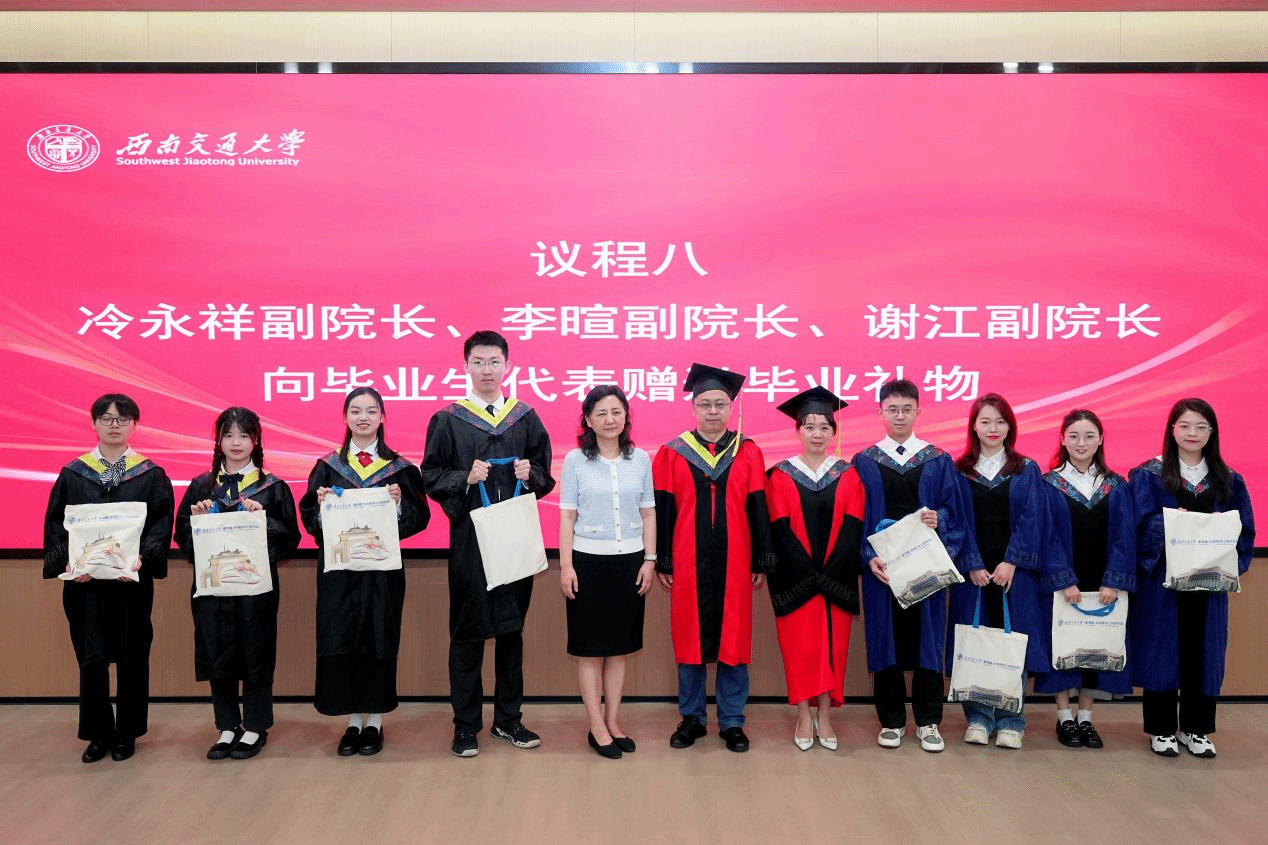 在颁奖环节结束后,冷永祥副院长、李暄副院长、成都市第三人民医院谢江副院长代表学院和医院向毕业生代表赠送了毕业礼物。这些礼物承载着学院对毕业生们深深的祝福和期望。它们象征着毕业生们即将踏上新的人生旅程,也寓意着学院将永远是他们坚强的后盾。