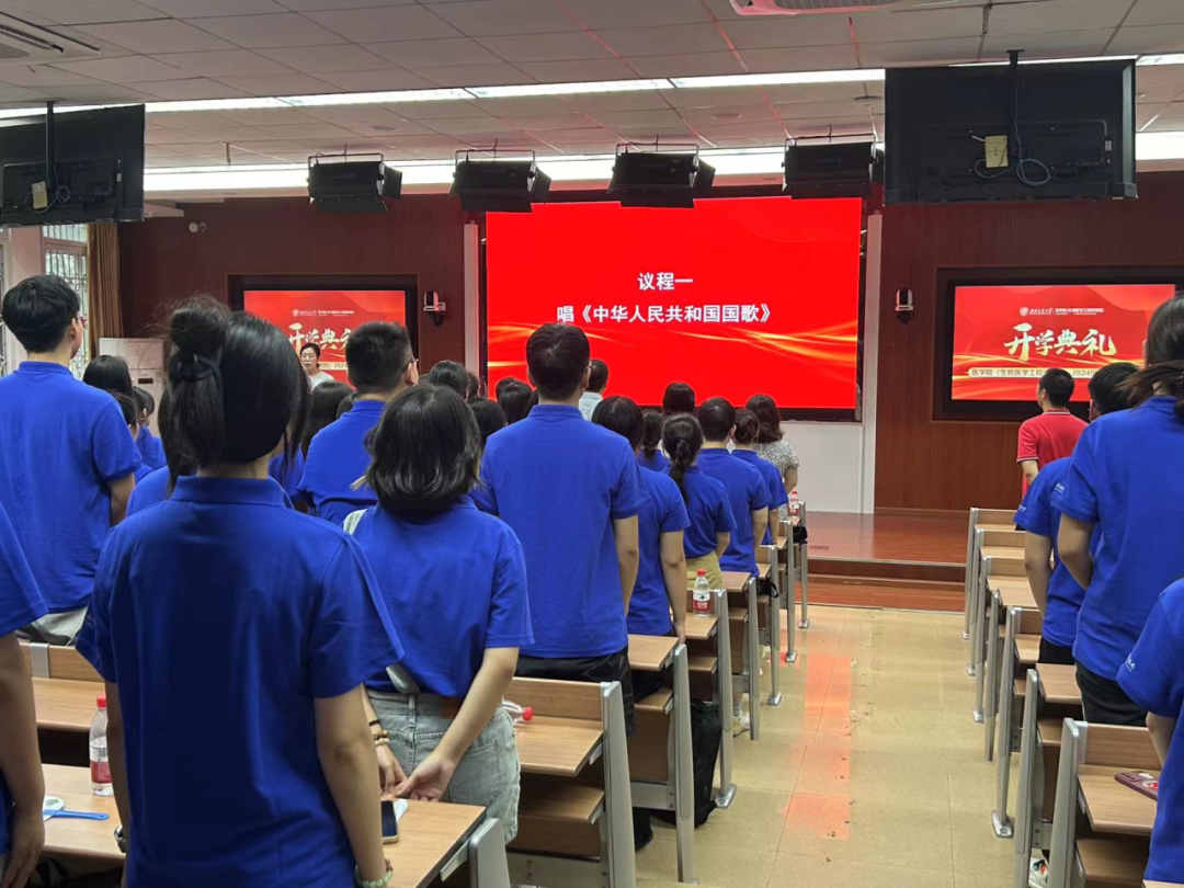 典礼在庄严的国歌声中拉开序幕,全体师生起立,齐声高唱中华人民共和国国歌,表达了对祖国的热爱和对医学事业的崇高敬意。随后,主持人于楠老师以饱满的热情和亲切的话语,为典礼的顺利进行奠定了基调。