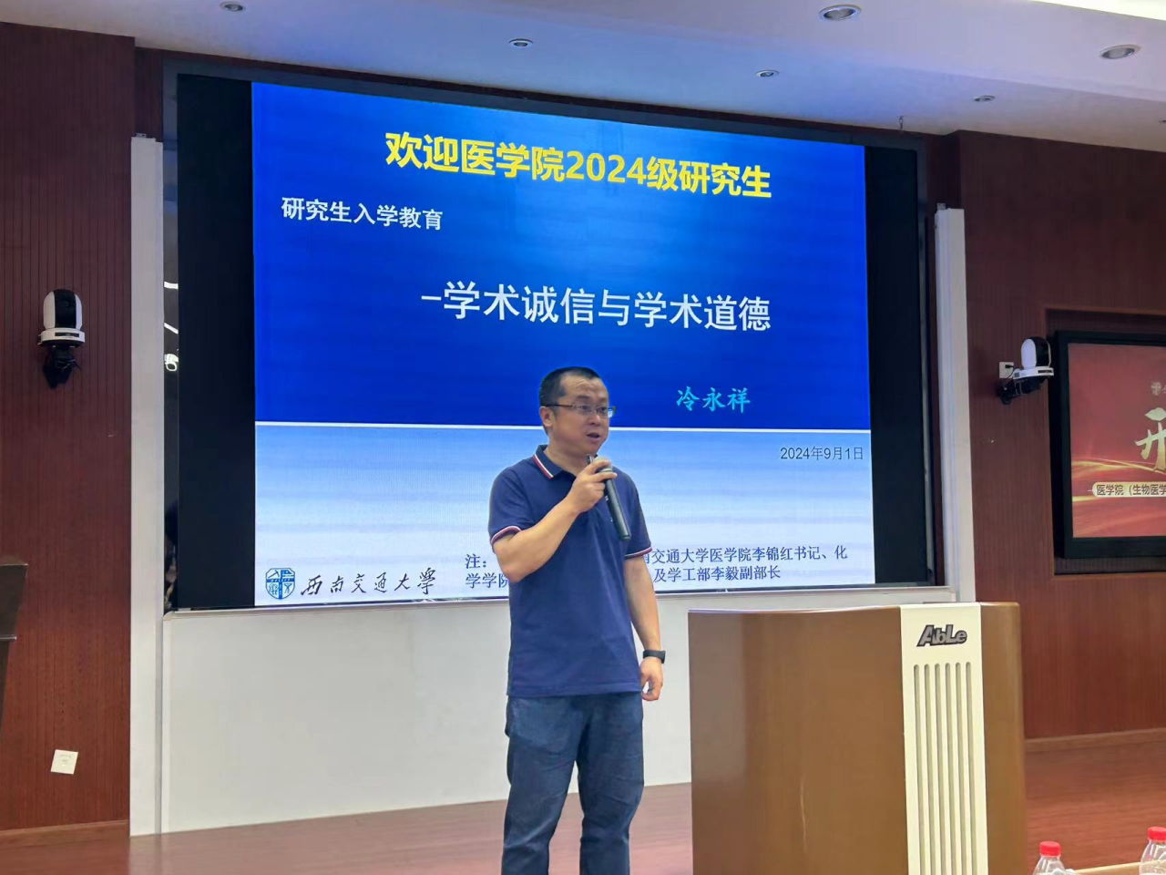 在典礼的尾声,全体师生再次起立,齐声高唱《网投十大信誉可靠平台校歌》,歌声中充满了对母校的热爱和对未来的憧憬。随后,冷永祥副院长为新生们讲授了入学教育第一课《学术诚信与道德》,他深入浅出地阐述了学术诚信的重要性,以及如何在学术研究中坚守道德底线。