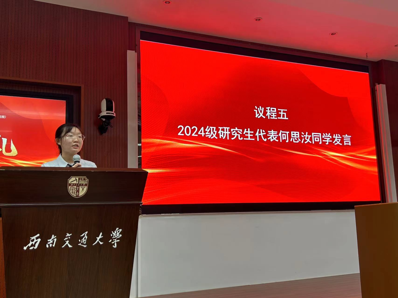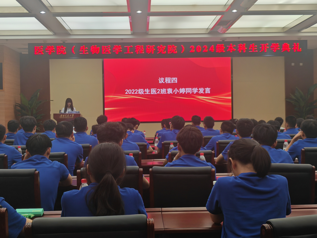 2024级研究生代表何思汝同学的发言同样令人印象深刻。她以新生的视角,表达了对即将开始的研究生生活的期待和对医学事业的热爱。她的话语中透露出坚定的信念和对未来的无限憧憬,展现了新一代学子的风采。