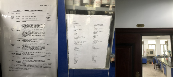 检查中发现有的实验室在危化品安全管理方面做得比较规范,比如:赵元聪老师实验室把易燃易爆、剧毒、易制毒、易制爆等危险化学品明细表张贴在危化品柜旁边,这样便于学生查询;李孝红老师实验室危化品柜附有各层危化品明细,台账登记、摆放到位,可供其他实验室借鉴。