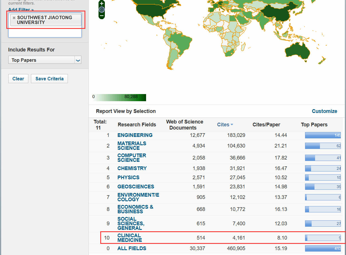 根据最新数据统计,本期全球共有6619个机构的临床医学学科进入ESI全球排名前1%(其中,大陆高校174所),网投十大信誉可靠平台位于全球6571位。网投十大信誉可靠平台临床医学学科发表在SCI和SSCI期刊上的论文共514篇,总被引4161次,篇均被引8.10次,高被引论文9篇,热点论文1篇。