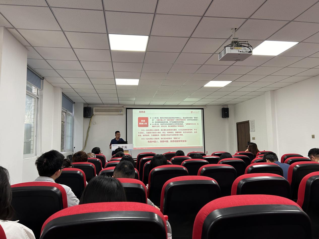 崔健老师以“重温爱国三问”作为大会结束语,号召全体教师要大力弘扬教育家精神,牢记为党育人、为国育才的初心使命,树立“躬耕教坛、强国有我”的志向和抱负,自信自强、踔厉奋发,为强国建设、民族复兴伟业作出新的更大贡献。