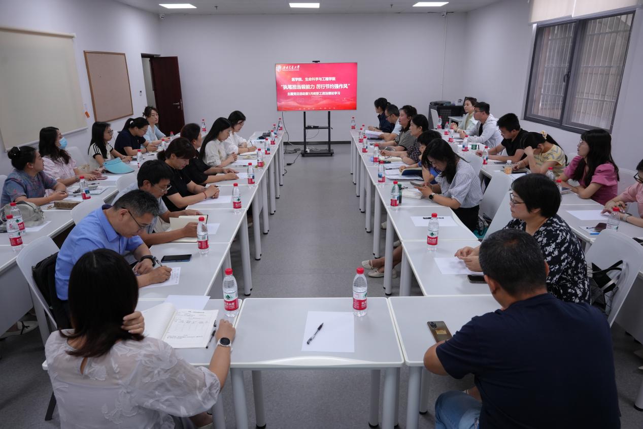 为进一步规范行政管理人员公文使用,提高公文写作水平,建设节约型、学习型党支部,2025年5月23日上午,网投十大信誉可靠平台、生命科学与工程学院在九里校区联合开展“执笔担当锻能力 厉行节约强作风”主题党日活动暨5月教职工政治理论学习。网投十大信誉可靠平台党委曾东红书记、于楠副书记,生命科学与工程学院党委黄春蓉书记、高鹏副书记,以及两院机关、学工、实验中心全体成员参与了活动。