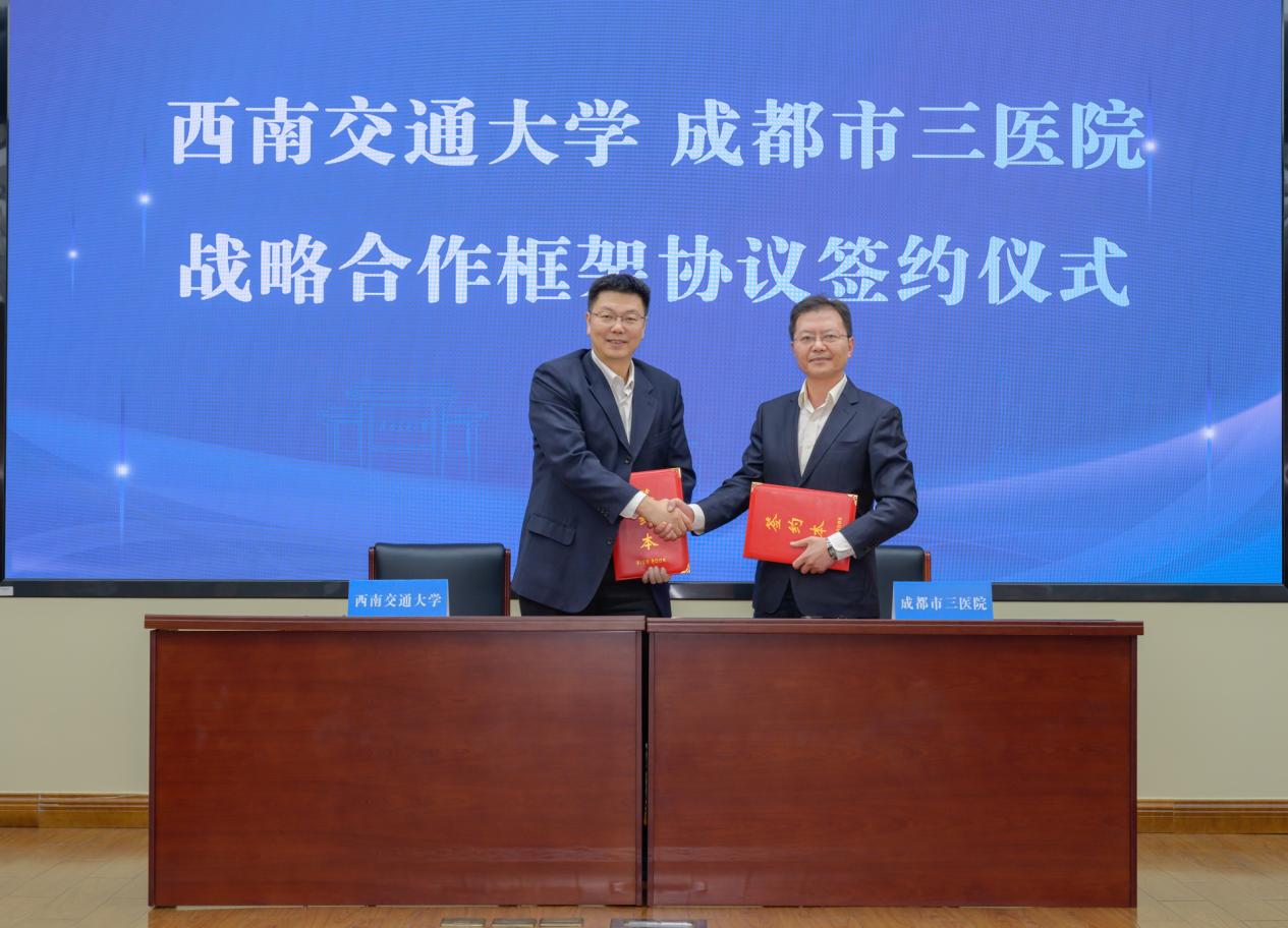 余敏明代表学校向市卫健委和市三医院长期以来对学校办学事业的帮助和支持表示感谢。他指出,学校高度重视医学事业发展,组建了“大健康”纵向学科群,构建生命医学学科体系,推动生医拓展、前沿交叉,实现医学与工学、生命科学等协同创新发展,形成了具有西南交大特色的独特医学优势。希望以此签约为契机,汇聚三方资源优势,推动有组织的人才培养、医工交叉、前沿医学研究、研究型医院建设,努力产出更广领域、更高水平的合作成果,推动三方实现高质量发展。