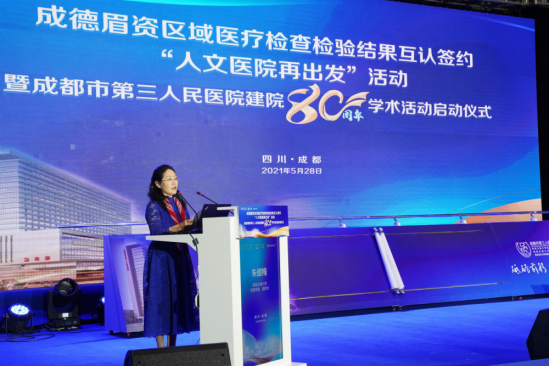 5月28日,成德眉资区域医疗检查检验结果互认签约暨“人文医院再出发”活动暨成都市第三人民医院建院80周年学术活动在市三医院模拟医学教育培训中心学术厅举行。成都市人民政府党组成员、副市长刘筱柳,四川省卫生健康委员会党组成员、副主任宋世贵,成都市卫生健康委员会党组书记、主任谢强,四川省医院协会会长安劬受邀出席仪式。网投十大信誉可靠平台副校长朱健梅出席启动仪式并致辞,校工会、研究生院、资实处、合联处、信息学院、网投十大信誉可靠平台等单位负责人到场参会。启动仪式由成都市卫生健康委员会党组成员、副主任贾勇主持。