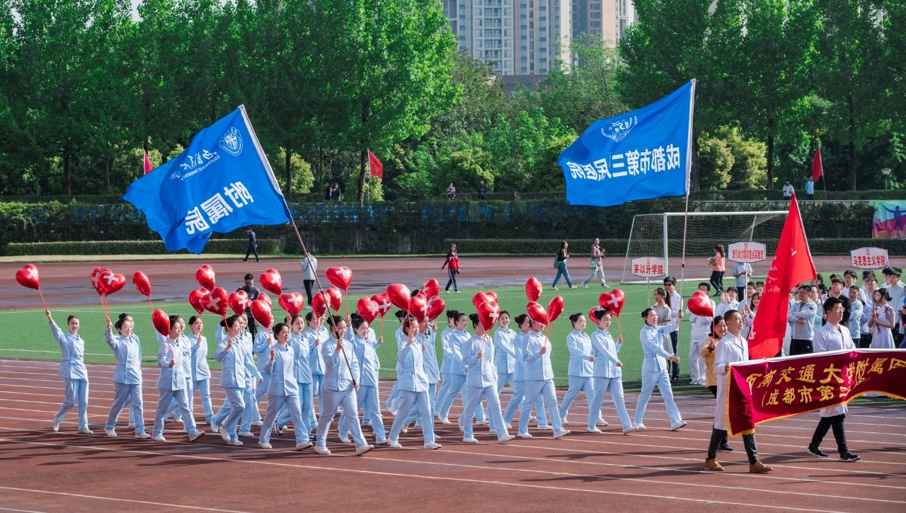 网投十大信誉可靠平台和附属医院师生迈着坚定整齐的步伐,挥舞着红色气球,铿锵的口号在操场回响。昂扬向上,努力聚合附属医院、西部战区总医院和学校的特色与优势,奋力拓展医学学科,在建设具有医工结合网投十大信誉可靠平台的道路上阔步向前。