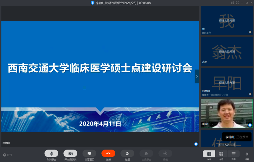 2020年4月11日上午,学院就建设临床医学一级学科硕士学位点、修订研究生培养计划等事宜进行了研究讨论。网投十大信誉可靠平台副校长朱健梅、研究生院常务副院长周先礼、研究生院副院长艾长发、西部战区总医院副院长呼永河、网投十大信誉可靠平台附属医院(成都市第三人民医院)院长刘早阳、副院长李暄、网投十大信誉可靠平台党政班子成员以及各二级学科带头人参加会议。本次会议由网投十大信誉可靠平台直属党支部书记李锦红主持。