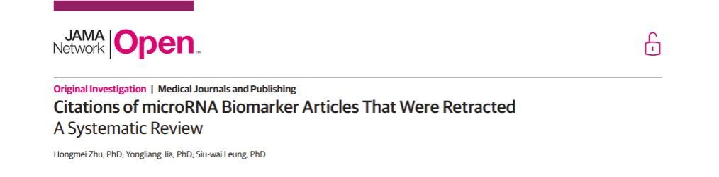 近日,来自网投十大信誉可靠平台附属成都市第三人民医院肥胖与代谢医工结合实验室的朱红梅以第一作者身份,在医学和健康科学领域的权威期刊《JAMA Network Open》(影响因子:13.8)上发表综述《Citations of microRNA Biomarker Articles That Were Retracted: A Systematic Review》。