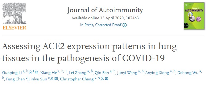 近日,网投十大信誉可靠平台附属医院(成都市第三人民医院)成都市呼吸健康研究所李国平主任带领团队利用生物信息学方法解析了新型冠状病毒SARS-CoV-2细胞受体ACE2的表达模式,并以第一作者和通讯作者身份在国际著名免疫学期刊《Journal of Autoimmunity》(中科院1区,影响因子7.54)在线发表了题为《Assessing ACE2 expression patterns in lung tissues in the pathogenesis of COVID-19》的文章。该研究可帮助临床医生和研究人员对SARS-CoV-2的发病机理有更深入的了解,并为新型冠状病毒肺炎(Corona Virus Disease 2019,COVID-19)治疗提供重要的理论依据。
