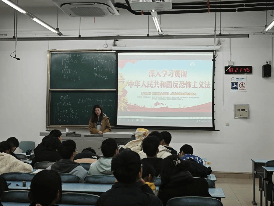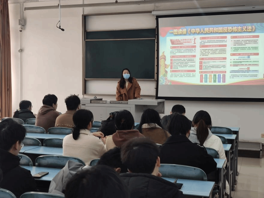 12月8日,2020级、2021级辅导员靳涵在各年级分别召开主题班会。在反恐怖主义法的学习主题中,靳涵老师首先解释了恐怖主义的定义和危害,使学生们对其有了更深入的了解。接着她向学生们介绍了反恐怖主义法颁布的背景和目的,带领大家共同学习反恐怖主义法。2022级、2023级辅导员王川玲于12月10日和11日召开主题班会,她强调同学们在日常生活,尤其是网络生活中,一定要提高思想政治觉悟,树立正确的价值观和人生观,提升辨别是非的能力,不跟风、不信谣、不传谣。她提醒同学们要时刻保持警惕,提高安全意识,如发现可疑物品或人员应及时报警,以保护自己和他人的安全。学生们深刻认识到了反恐斗争需要团结一致,共同努力,作为新时代的主力军,必须提高政治敏感度,加强自身的政治修养,一同维护社会的安全和稳定。