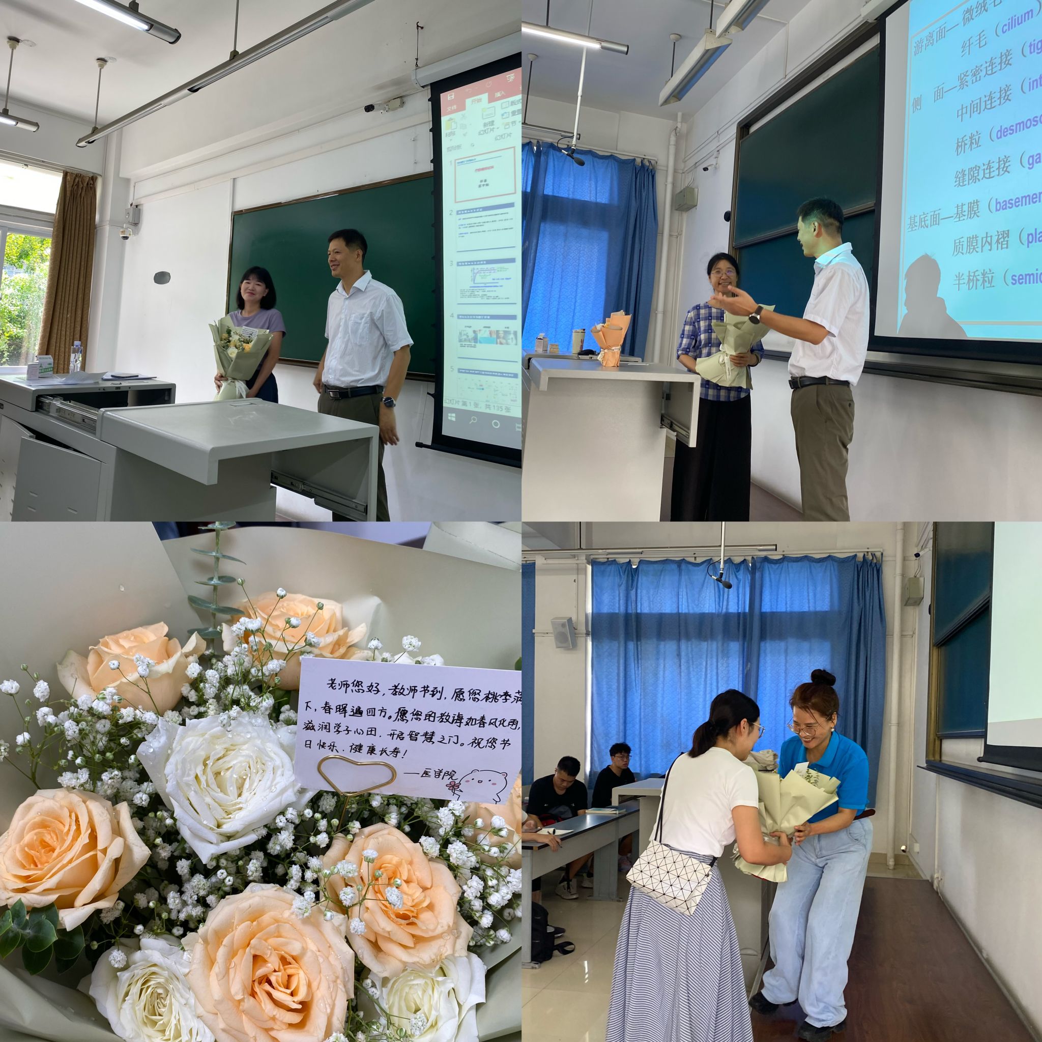 学院温情献花,感恩教师付出10日,学院党委书记李锦红、党委副书记于楠手持鲜花,走进教室,为即将上课的老师们送上节日的祝福。每一束鲜花都承载着学院对老师们辛勤耕耘的感激之情,也象征着对教育事业美好未来的期许。