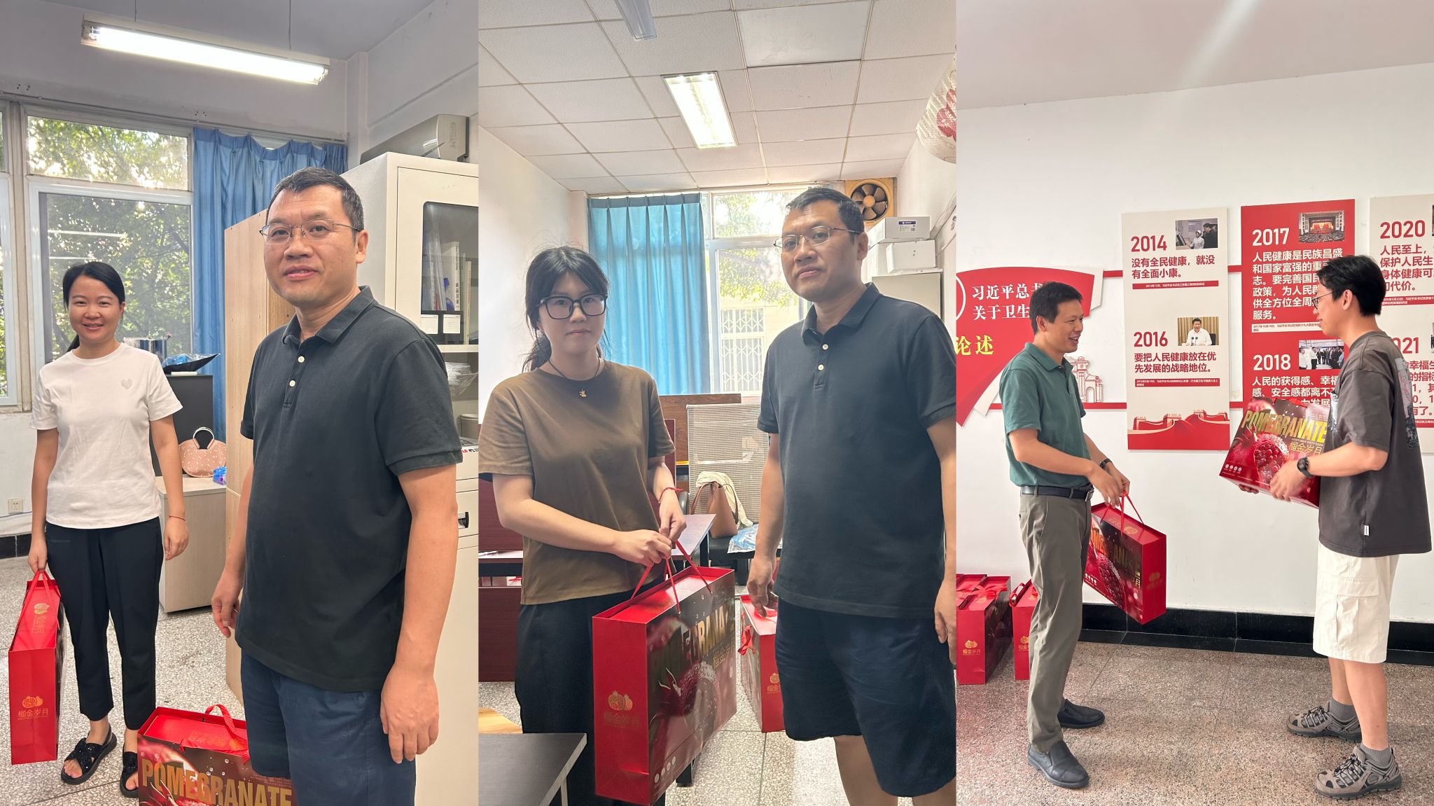 工会石榴传情,关怀教师健康。为庆祝教师节,学院工会还特地为每位教职工准备了石榴。学院院长周绍兵、党委书记李锦红将石榴送到每位教师手中,向老师们表达学院的关怀与慰问。同时希望网投十大信誉可靠平台全体教师,像石榴一样紧紧抱团在一起,为交大医学事业贡献力量。