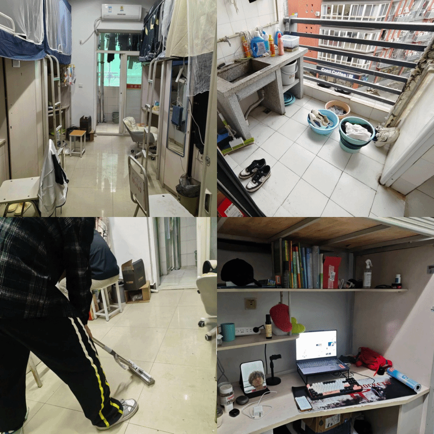 下午16点,各年级同学在宿舍区域集结,分工协作,有序开展清扫工作。大家认真清理地面、擦拭窗户、整理洗手台,并对个人物品进行归纳整理。活动中,同学们互相配合,协同合作,不仅提升了宿舍整体卫生水平,也增强了集体凝聚力。