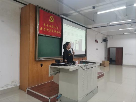 首先,喻谦同学向大家阐述了心肺复苏知识学习的必要性,我国仍有10亿人需普及心肺复苏知识。在日常生活中,意外随时都可能发生,在专业救援队伍到来之前,如果有能力进行自救或救人,那么便能尽量挽救生命、减少损失。那么什么是心肺复苏呢?带着这个问题,喻谦同学接着为同学们阐述了心肺复苏在医学上的基本原理,用浅显的语句为非医学专业的同学们很好的解释了心肺复苏。在现实中遇到紧急情况时,我们可以怎么做呢?喻谦同学为同学们介绍了徒手成人心肺复苏流程,并逐一介绍操作的要点和规范,运用图片和现场演示相结合的方式,让同学们近距离观看和学习了心肺复苏的标准流程。