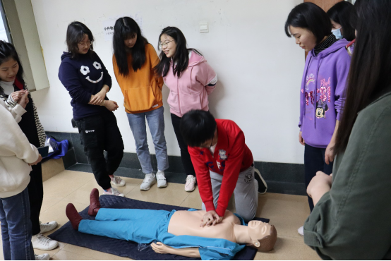 最后,由同学们纷纷上台体验心肺复苏和海姆立克的现场操作,为活动画上了圆满的句号。