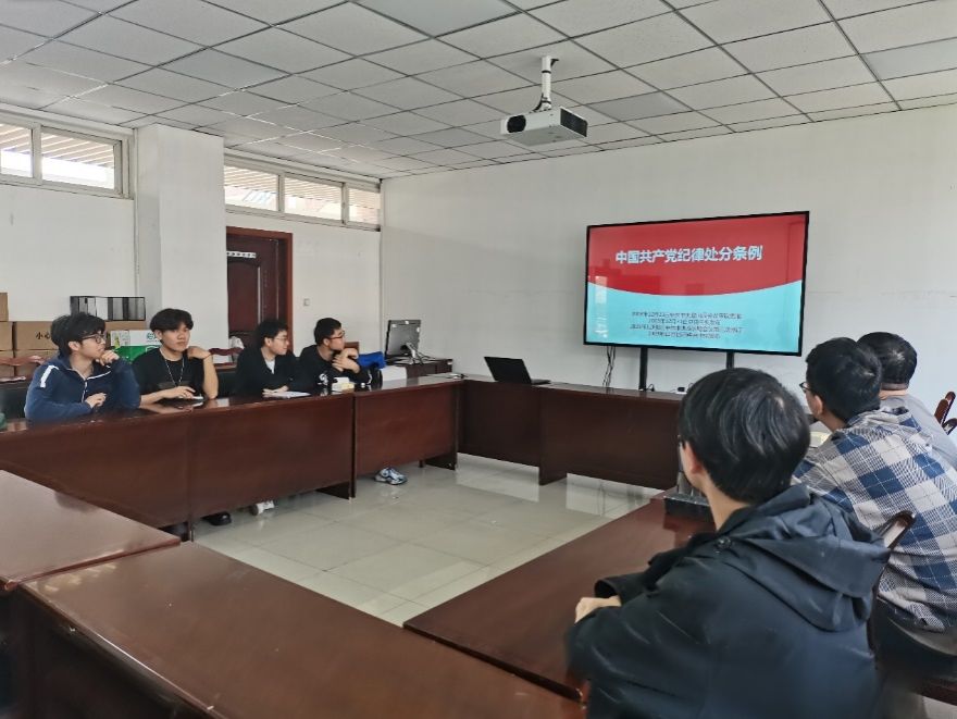 接着,刘灿带领同志们学习了习近平总书记关于党的纪律建设的重要论述以及《中国共产党纪律处分条例》。刘灿结合学院党委李锦红书记的纪律党课内容,分享道“办好中国的事情关键在党,关键在党要管党,从严治党”,同时从《条例》的五大特点出发,解读了《条例》的部分内容。与会党员们表示将认认真真、原原本本学习掌握《条例》内容,做遵规守纪的合格党员。