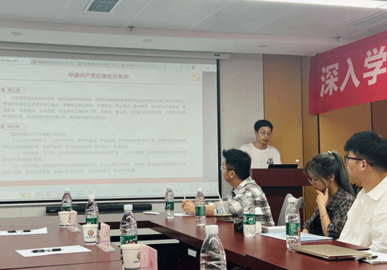 李锦红书记结合自己的学习心得,作了党纪学习教育的报告,鼓励同志们认真学习党纪条例,增强党性、严守纪律、砥砺作风,争做新时代的好青年好党员。