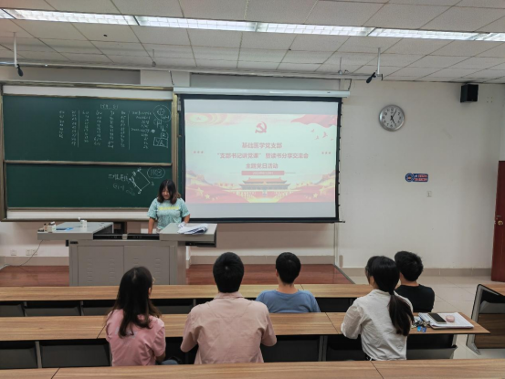 6月29日下午,基础医学党支部在九里校区4106开展了“支部书记讲党课”暨读书分享交流会主题党日活动,全体党员参与了此次活动。