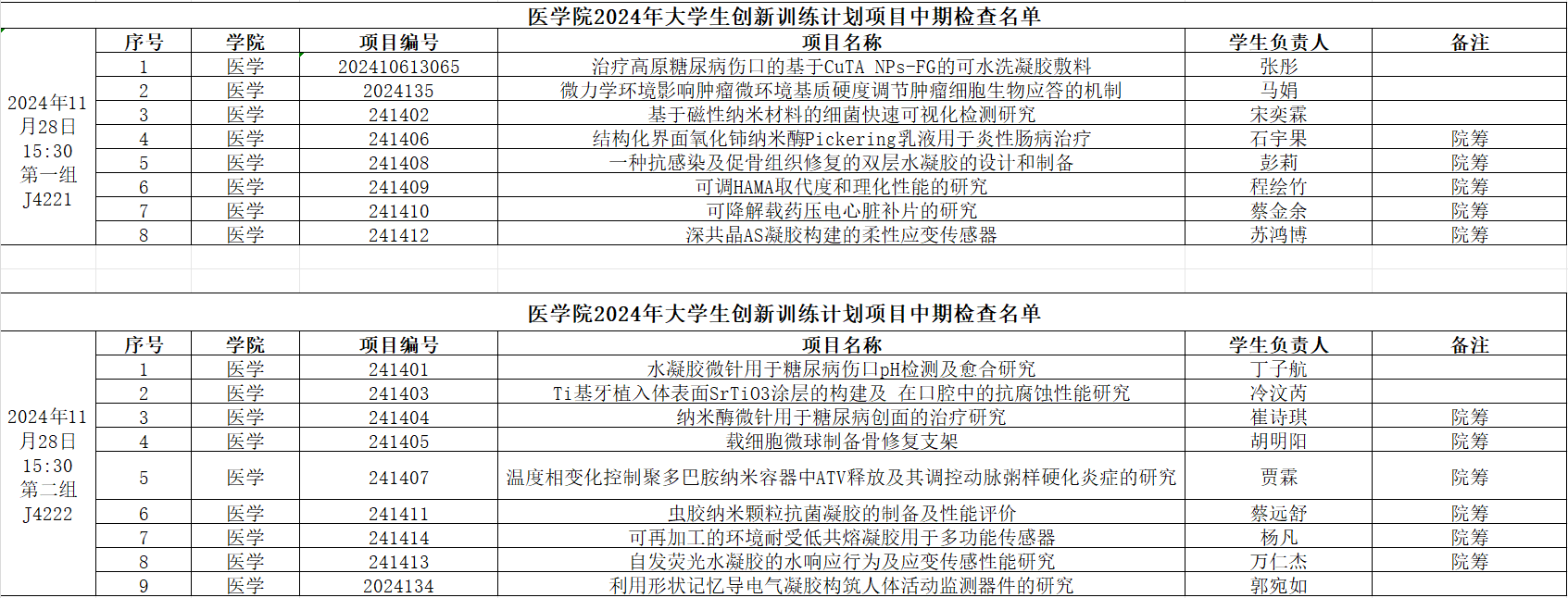 (3)根据学院安排,于2024年11月28日15:30,在J4221、J4222参与中期检查答辩,详见《网投十大信誉可靠平台大学生创新创业训练计划(SRTP)项目中期检查安排表》(图1)。