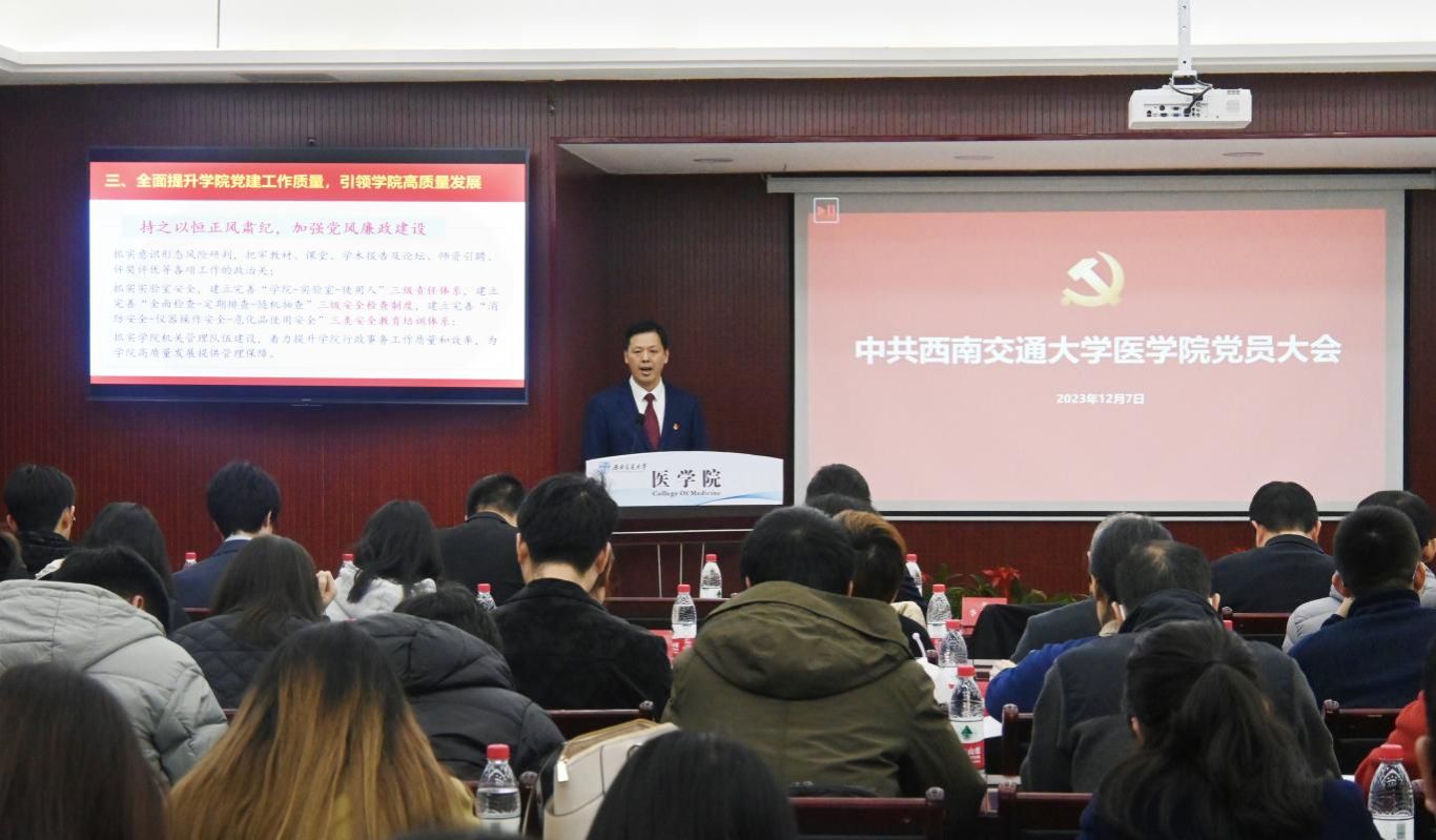 12月7日下午,中国共产党网投十大信誉可靠平台党员大会在九里校区4号综合楼4102交流厅隆重召开。学院全体师生党员参加了此次会议,会议由学院党委副书记于楠主持。学校党委组织部副部长许军华,网投十大信誉可靠平台院长周绍兵,附属医院(成都市第三人民医院)副院长兼网投十大信誉可靠平台副院长李暄,网投十大信誉可靠平台原副院长、民建会员翁杰及学院各民主党派教师代表出席了此次会议。