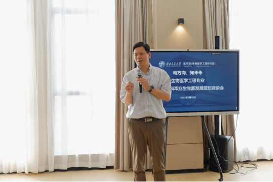 为落实学校和学院关于学习贯彻习近平新时代中国特色社会主义思想主题教育的工作部署,将调查研究工作落地落实,着力解决学生的实际问题,做好准毕业班学生的发展与支持,帮助学生做好升学、留学、就业的规划,5月18日16:00,“明方向,知未来”网投十大信誉可靠平台生物医学工程专业2024届本科毕业生生涯发展规划座谈会,在犀浦校区x31022举行。网投十大信誉可靠平台党委书记李锦红、副院长冷永祥、副书记于楠、院长助理郑晓彤、系主任向韬、班导师赵静雅和侯建文等学院领导和老师参加了座谈会,座谈会由团总支书记胡豪主持。