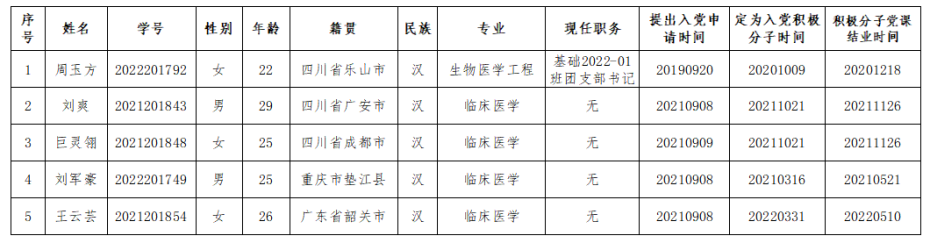 经班团组织推优、群众意见征集、党支部委员会讨论,现将网投十大信誉可靠平台党委2023年第一批发展对象预备人选名单公示如下: