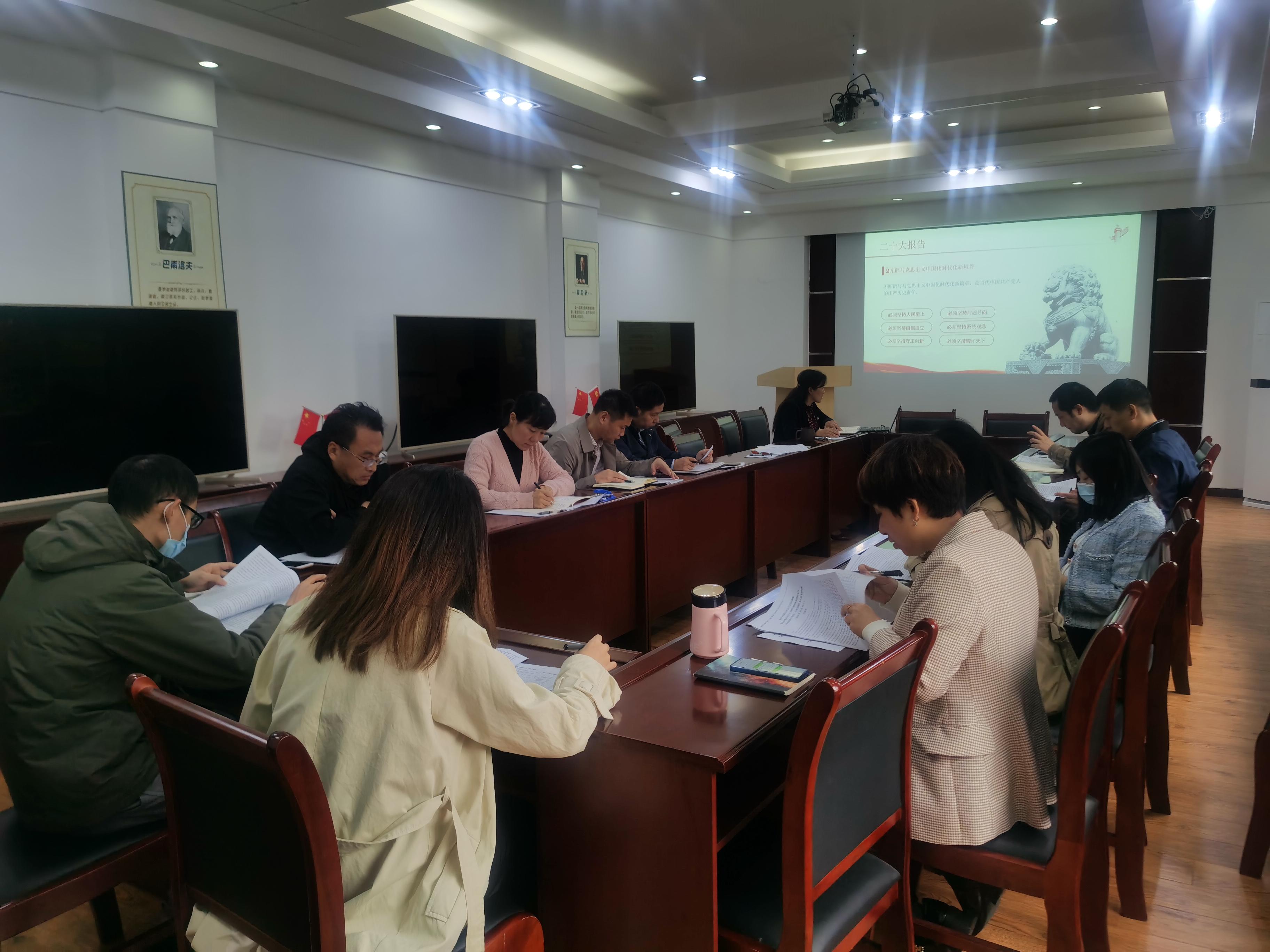 为深入学习宣传贯彻中国共产党第二十次全国代表大会精神,把全院教师思想认识统一到党的二十大精神上来,学院教师党支部于10月27日下午在A204会议室开展“学习二十大精神,争做时代先锋”主题党日活动。学院全体党员、部分党外人事参加了主题党日活动。