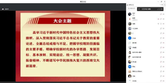 首先,柏娜同志向大家详细介绍了此次大会的主题:高举习近平新时代中国特色社会主义思想伟大旗帜,深入贯彻落实习近平总书记关于教育的重要论述,全面总结成绩与不足,把握学校现阶段面临的主要矛盾,明确学校新时代的办学思路、发展目标、基本准则、实现途径,统一思想,凝聚共识,振奋精神,不断谱写中华民族伟大复兴的西南交大新篇章。然后,柏娜同志带领大家回顾了学校第十四次党代会以来的一些成就,包括首轮“双一流”建设高质量完成,校园文化建设呈现新面貌,立德树人彰显新成效等。接着,她又向大家介绍了未来五年乃至到建校150周年之际我校办学治校的总体思路、发展目标及基本准则;最后,学习了未来五年学校高质量发展的实现途径。